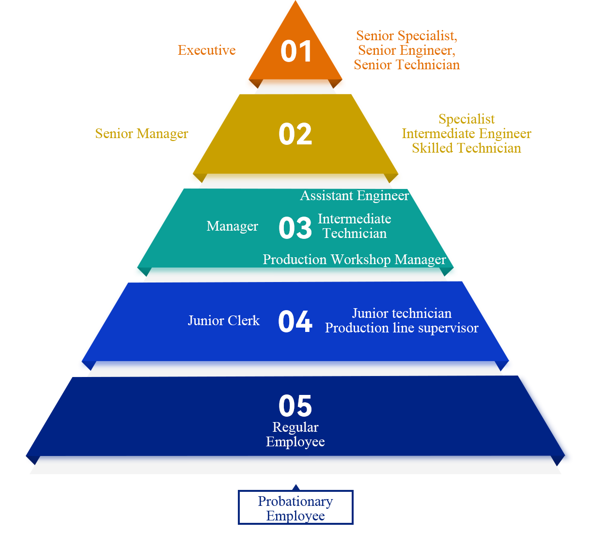 This is a new career path system and incentive mechanism designed to provide professional and technical personnel with equal status, remuneration and more career development opportunities with managers. Employees can choose different promotion paths according to their personal career development and career maturity stage.